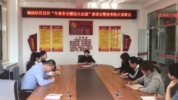 春季来临,为保证辖区内安全,创建平安家园,3月1日上午,桐雨社区召开“冬春安全整治大会战”部署会及燃气安全部署会,确保人民群众生产安全。同时还对全体工作人员进行了入户走访调查培训会,增强工作人员对即将进行的入户走访调查有深刻理解和注意事项。社区书记李欣怡及全体工作人员参加了此次会议。