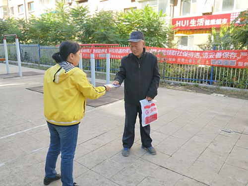 10月9日上午,南关区全安街道财神社区组织社会保障保卡的使用政策宣传活动。