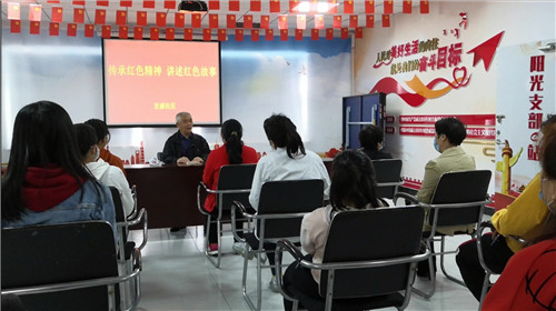 活动中,社区邀请到基层宣讲员柳玉峰为社区工作人员及居民讲述红色革命故事。回忆起当兵的那段峥嵘岁月,感慨万千。他将自己当兵时教导员郑起的亲身经历讲述给大家。