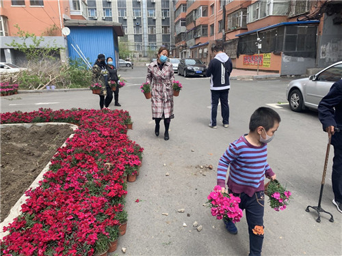 5月12日上午,红旗街道德昌社区公交北区“三长”便民微信群里就开始热闹起来。你家出人、他家出力、小区院里热火朝天,搬运花苗,除草翻地、栽花培土、踩实浇水。互相配合,秩序井然,每个人脸上都洋溢着幸福的喜悦,将一株株花苗种了下去,现场气氛和谐活跃。