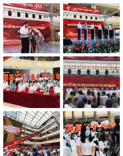7月29日上午8:30分,长春市南关区自强街道重庆路双拥示范商业街启动仪式正式开幕。来自省、市退役军人事务管理局的领导;驻长部队单位代表、南关区委区政府领导、自强街道及商户代表参加了开幕式。重庆路南社区辖区单位活力城、亚泰富苑、新华书店、长春圈楼等多家单位被评为南关区双拥商业街示范商户,并现场为企业授予《双拥示范店》!