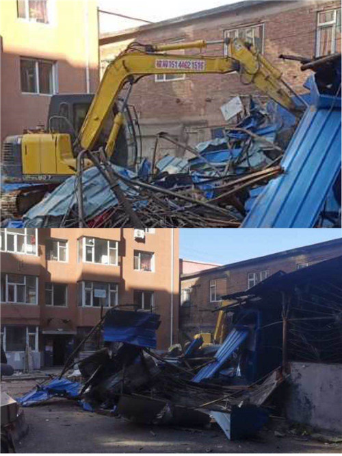 累计拆除面积400余平方米,清运建筑垃圾45车,累计人工90余人次,铲车4个台班,铲车4个台班,电镐破拆2个台班。