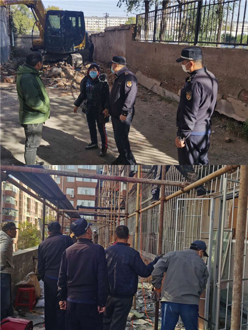 柔性执法,助力拆违。前期街道充分发挥社区党组织 " 轴心 " 功能,强化社区大党委作用,以小区网格为单位,由分包社区的机关干部带领社区两委成员、网格员、小组长深入网格宣传、收集民意,主动与违建住户沟通、协调,耐心对其进行政策解释;对辖区所有违法建筑进行拉网式排查摸底,建立 " 一户一档 " 工作台账、销号作业;并在小区内醒目位置悬挂宣传标语,对违法建设提前张贴政府公告、动员居民自拆违建,做到有理有据、和谐拆违。