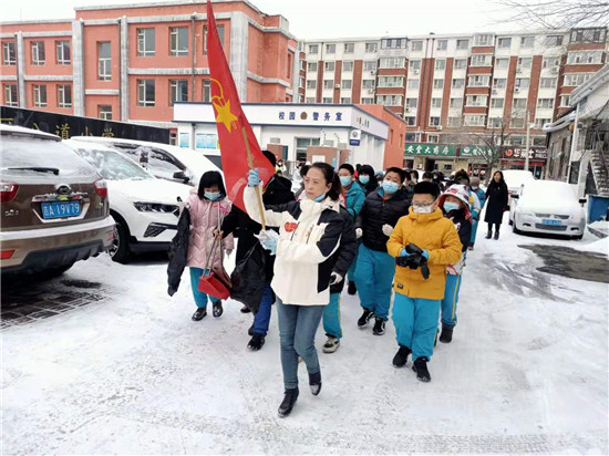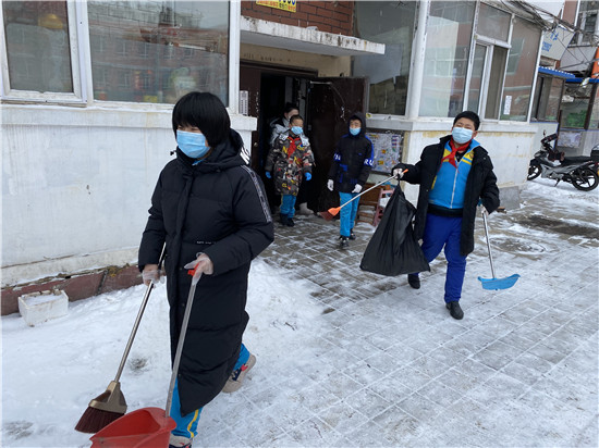 在十委辖区内的电力宿舍小区和教师楼小区,志愿者们戴着小红帽、手拿小铲子、扫把等工具对楼道内的小广告、乱堆乱放的杂物进行清理,对楼门、楼梯扶手等进行擦拭,对小区内部及周边卫生死角进行集中清理整治。昨天夜间,长春突降大雪,小区楼栋间的积雪还没来得清理,吉林省税务局的青年志愿者们看着各楼栋前的积雪,担心影响居民出行,自发的拿起扫帚、铁锹进行清雪。大家相互配合、通力协作,为出行的车辆、居民清出了一条条便利安全通道。经过大家的共同努力,楼道和小区内公共区域的环境变得整洁有序。