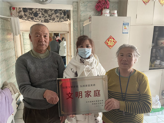 12月14日,龙山路社区党委书记张莉敏对“文明楼道”“文明家庭”进行挂牌。居民表示:“有了这项荣誉,将更积极地参与文明社区创建,在邻里间发挥带头模范作用。”